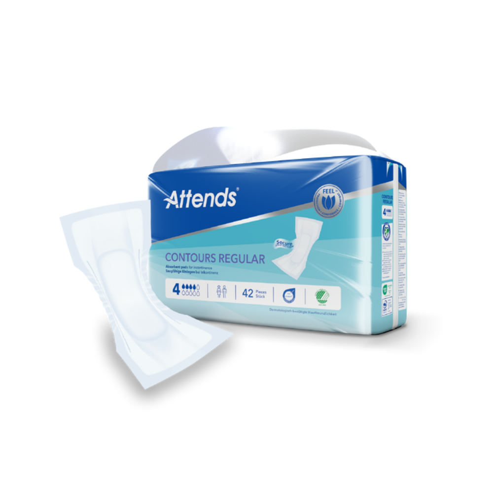 Dank Attends Contours Regular 4 fühlst du dich sicher – Tag und Nacht. Die hautfreundlichen Materialien sorgen für ein angenehmes Tragegefühl über den ganzen Tag. Ein verlässlicher Begleiter für mehr Lebensqualität.