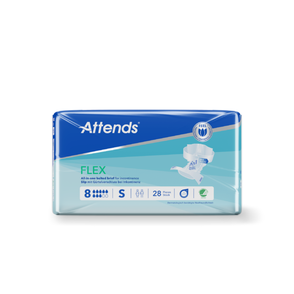 Mit Attends Flex 8 S genießt du verlässlichen Schutz und höchsten Komfort. Die Kombination aus Saugstärke, Atmungsaktivität und Komfort macht es zur idealen Wahl. Ein verlässlicher Begleiter für mehr Lebensqualität.