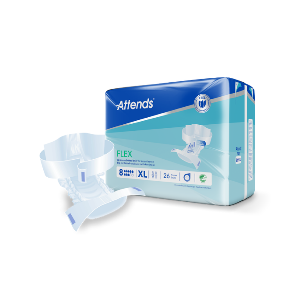 Mit Attends Flex 8 XL genießt du verlässlichen Schutz und höchsten Komfort. Die hautfreundlichen Materialien sorgen für ein angenehmes Tragegefühl über den ganzen Tag. So fühlst du dich rundum wohl und geschützt.